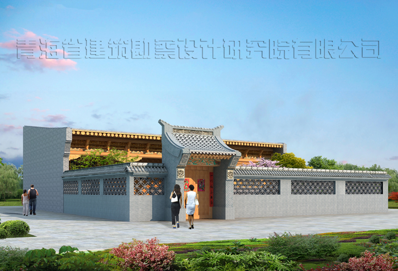 門窗采用河湟民居建筑上的花窗、木門裝飾、大門頂為小青瓦、青磚門墩、木雕花門套和木門扇,凸現(xiàn)河湟民居特色。